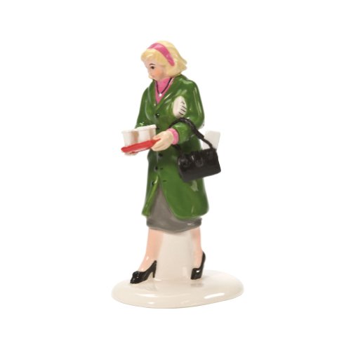- Blond woman with black purse dressed in green dress carrying 4 cups of coffee to go porcelain accessory figurine
