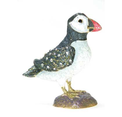 Puffin Flora and Fauna Crystal Mementos Collectible Figurine by Tudor Mint. Stands 1 3/4in / 4.5cm high. 24K Gold Plated - Hand Painted